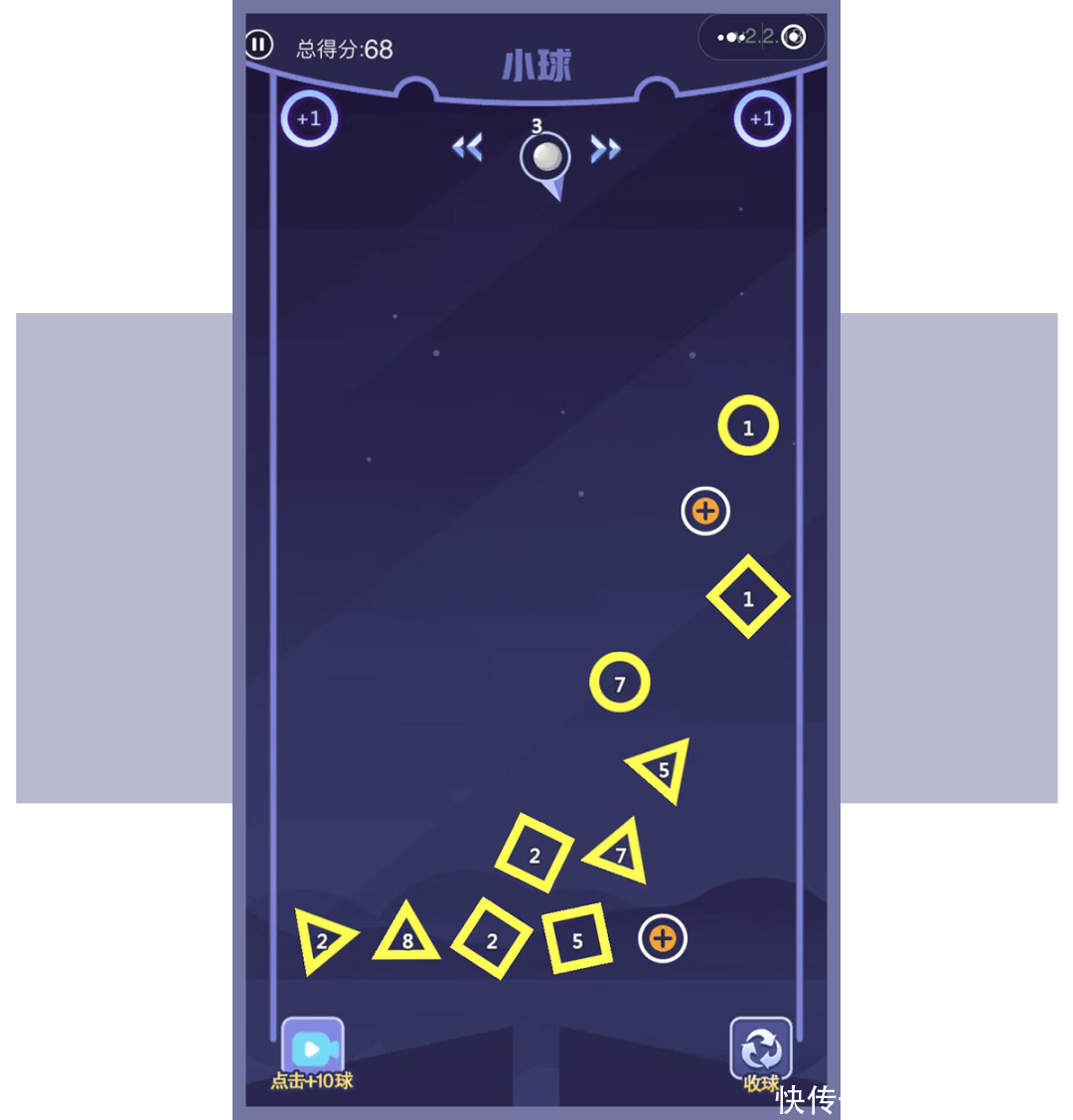 通过操作小球弹射出去将页面上速即摆放的圆形大约三角弹射屡次后就会排斥~