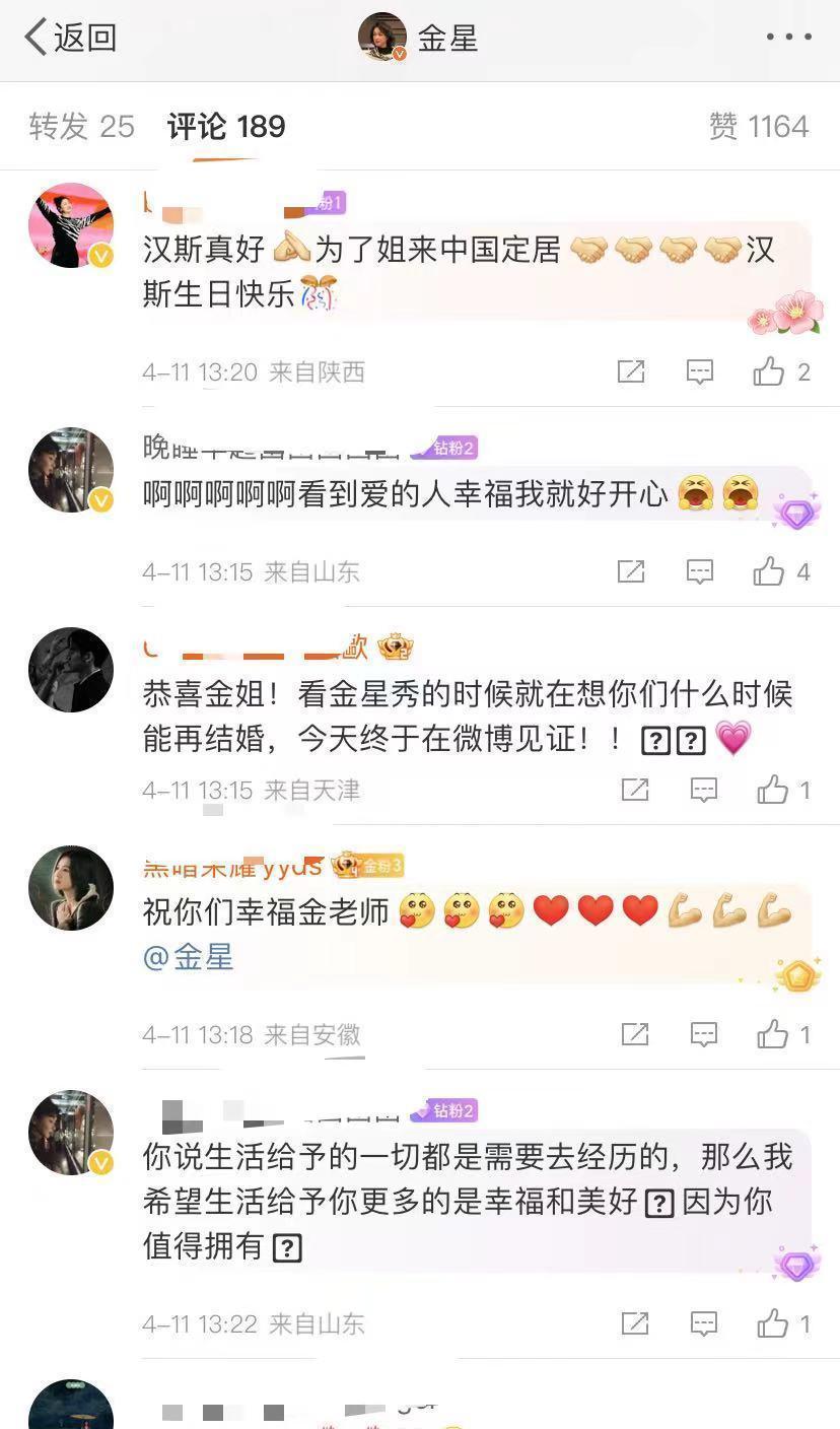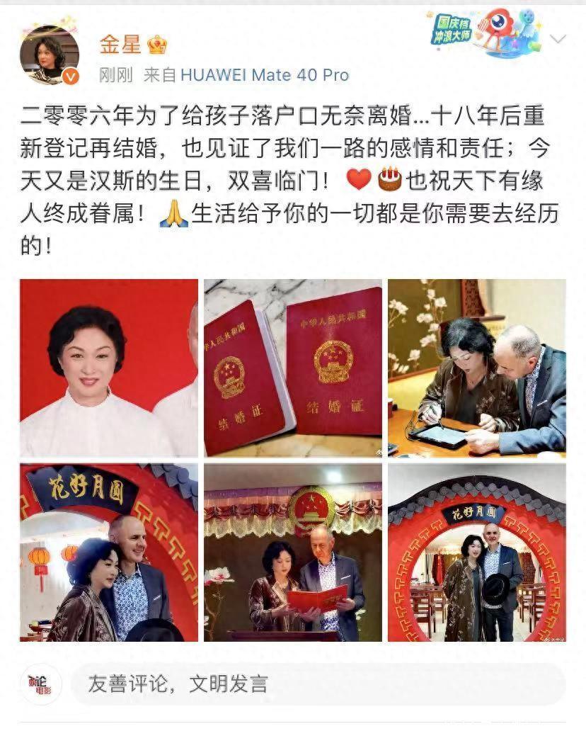 金星发文并晒出领证的像片,示意2006年为了给孩子落户口无奈仳离,十八年后从头登记再授室,也见证了他们一齐的情谊和包袱。4月11日是老公汉斯的诞辰,可谓双喜临门,也道贺宇宙多情东说念主终授室眷,生活予以你的一切皆是你需要去履历的。 56岁金星和汉斯浮现于2004年,他们搭乘团结班飞机,从法国巴黎飞往上海,那时邻座即是汉斯。       2004年2月浮现,6月在全部。2005年2月1日授室,其后为了孩子的收养证和户口问题,两东说念主在2006年仳离,两东说念主可能莫得再授室,收养了三个孩子,两个犬子和一个女儿。       诚然莫得再婚,但金星和汉斯干系一直很好,也一直生活在全部共同赡养三个孩子,他们全部录制过综艺节目,汉斯是个的确东说念主,金星略显强势,嗅觉汉斯很受气,实则金星是刀子嘴豆腐心,对汉斯照旧很爱,两东说念主时常去海外旅游度假,当今孩子皆大了,也有我方的生活,可能金星合计应该给汉斯一个名分,是以从头登记再授室。       选拔在老公诞辰这天登记,阐发金星相配爱老公。
